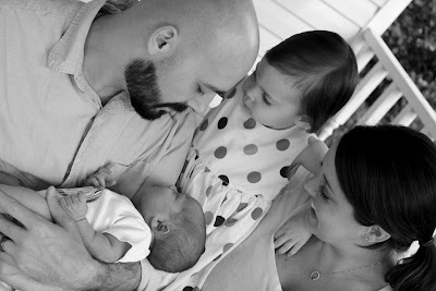 Introducing Lincoln Daniel Cohee, born April 4 at 4:26 PM. 8 lbs. 11 oz. 19 inches long (All photos taken by Sarah Cruze Designs)And here is our family of four...Notice Little Pea's bruise in the middle of her forehead. This is pretty typical for her.